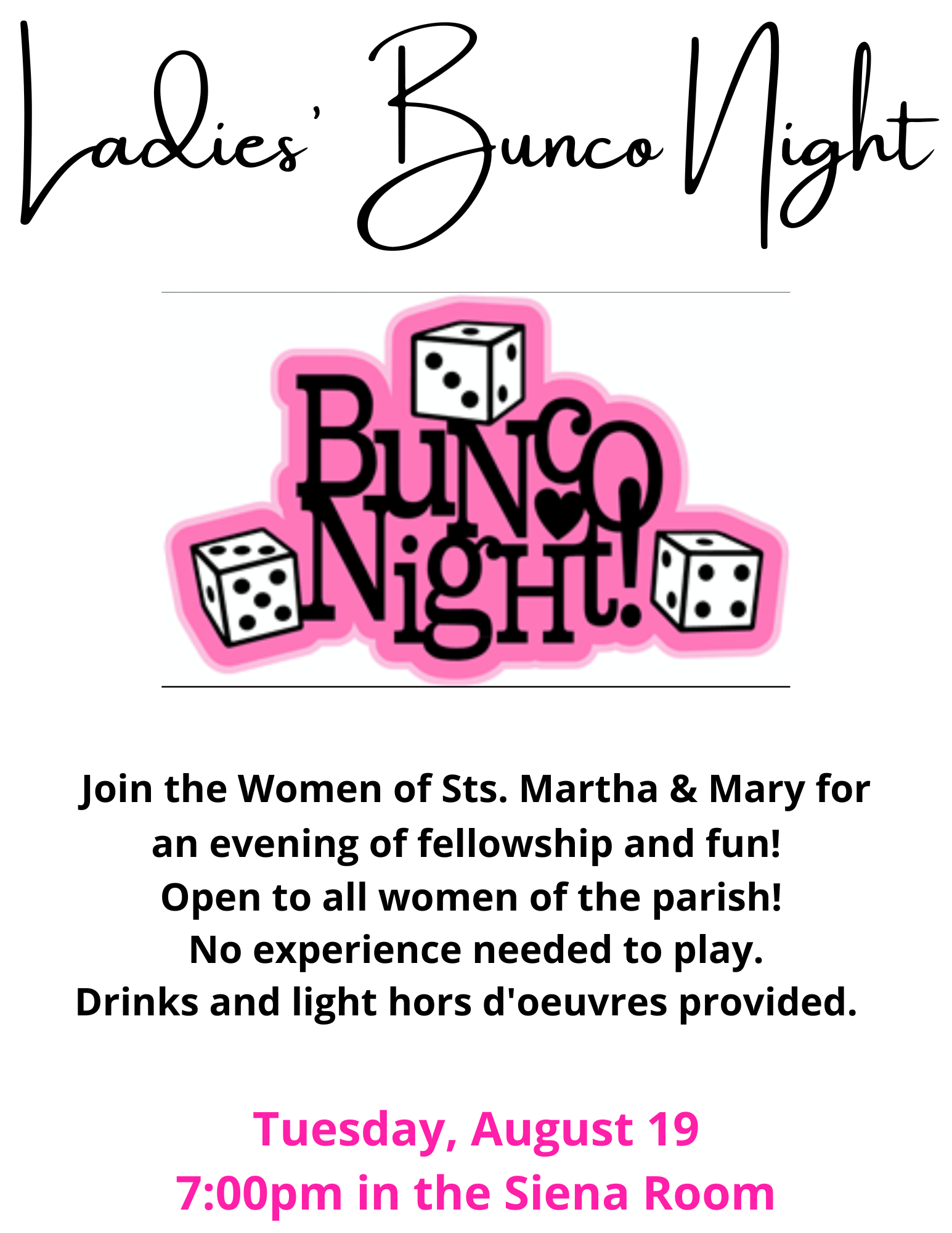 Our goal is to meet women where they are. You’re welcome to participate as much or little as you can. The Women of Saints Martha & Mary organizes bible studies, spiritual retreats, and service projects throughout the year. The monthly meeting will provide an overview of each. Retreats and service projects will be scheduled in addition to meetings as necessary and bible studies will meet weekly for the month they are assigned.